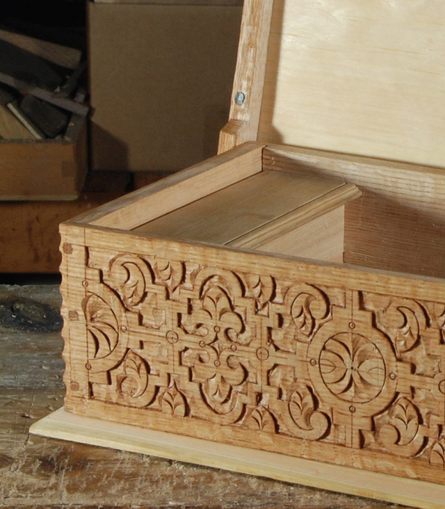 Projects and classes include a Shaker hall table, a 17th century carved frame and panel, a carved oak box, carving acanthus leaves, Arts & Crafts rocking chair with slip seat, and a portable tool chest. |